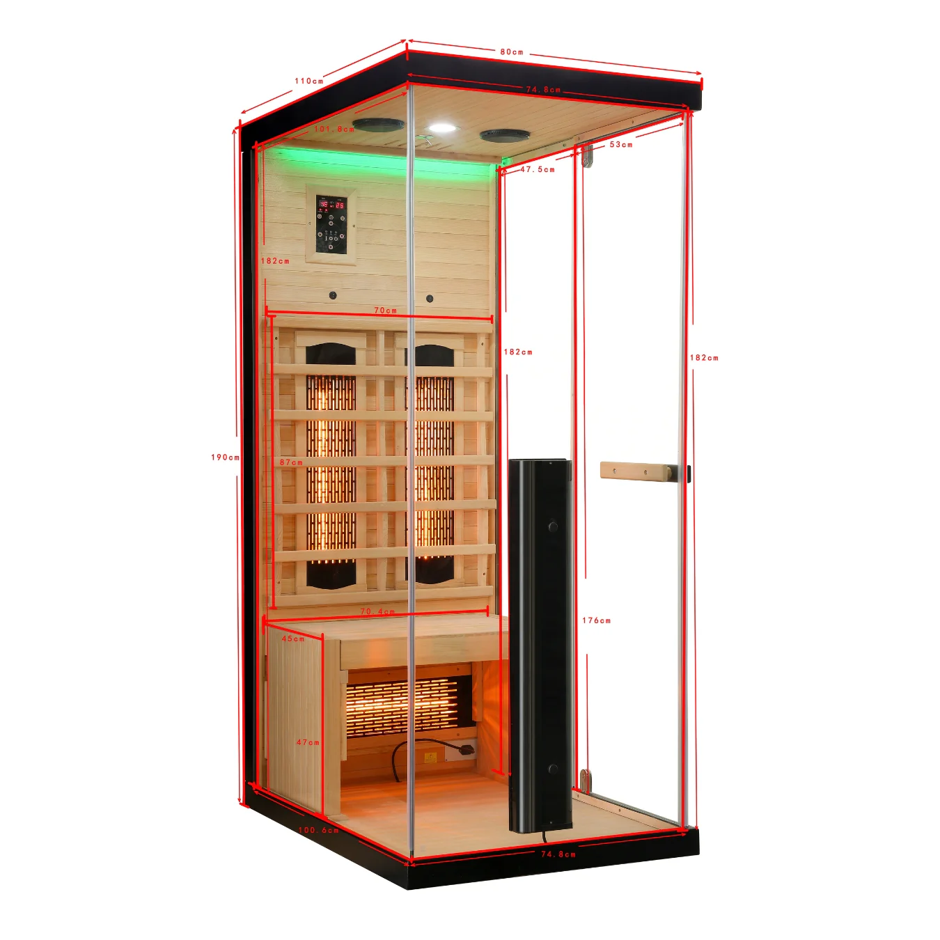 Infracrvena sauna Billund za 1 osobu predstavlja praktično i moderno rješenje za sve koji žele učinkovitu infracrvenu terapiju u vlastitom domu. Zahvaljujući kompaktnim dimenzijama i naprednoj tehnologiji, ovaj model omogućuje jednostavnu instalaciju u manjim prostorima, uz zadržavanje visokog standarda wellness iskustva.