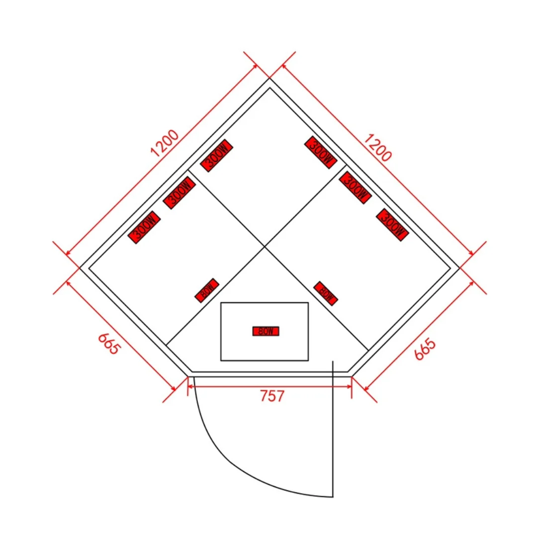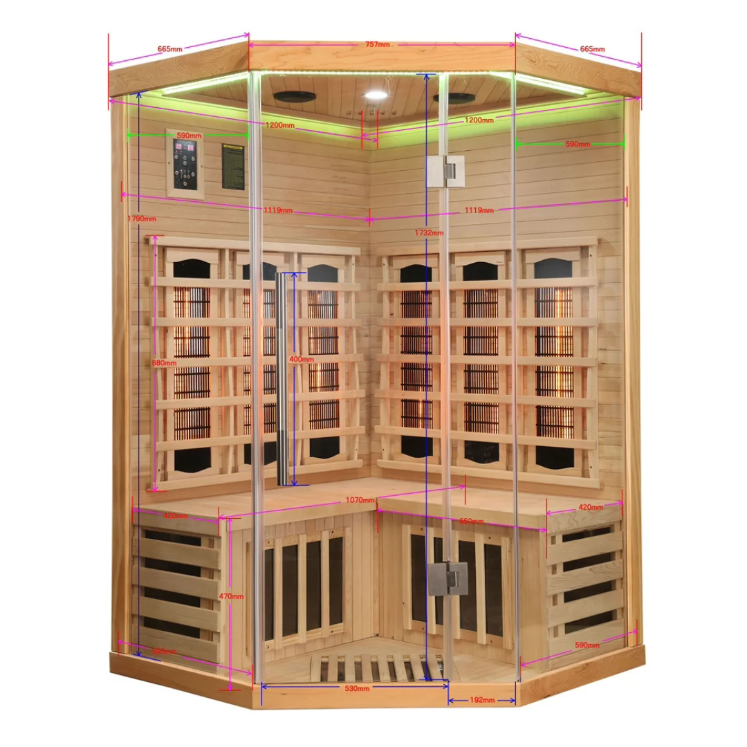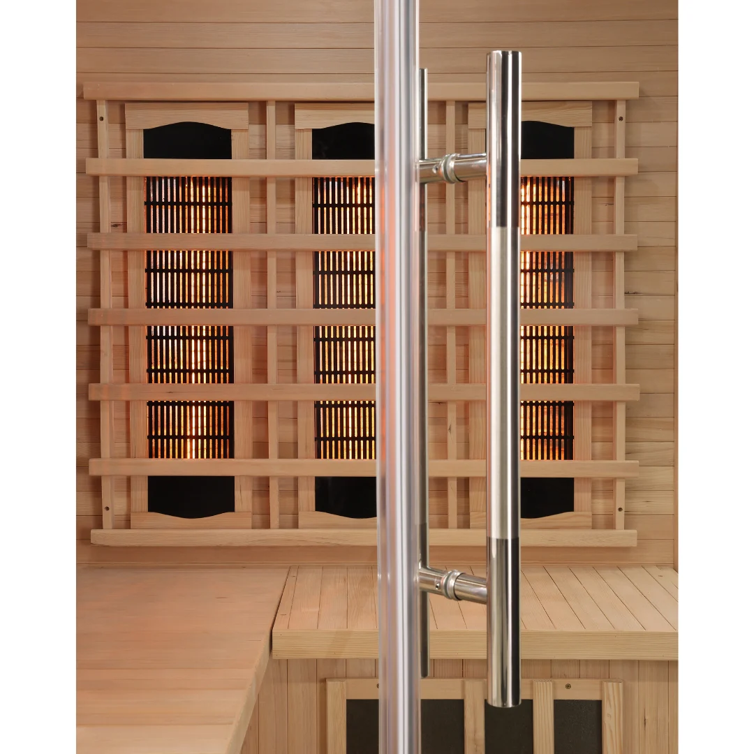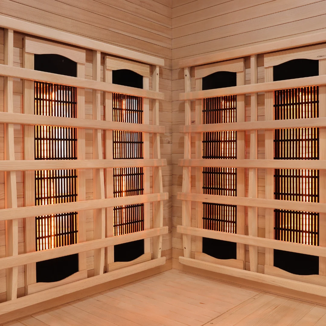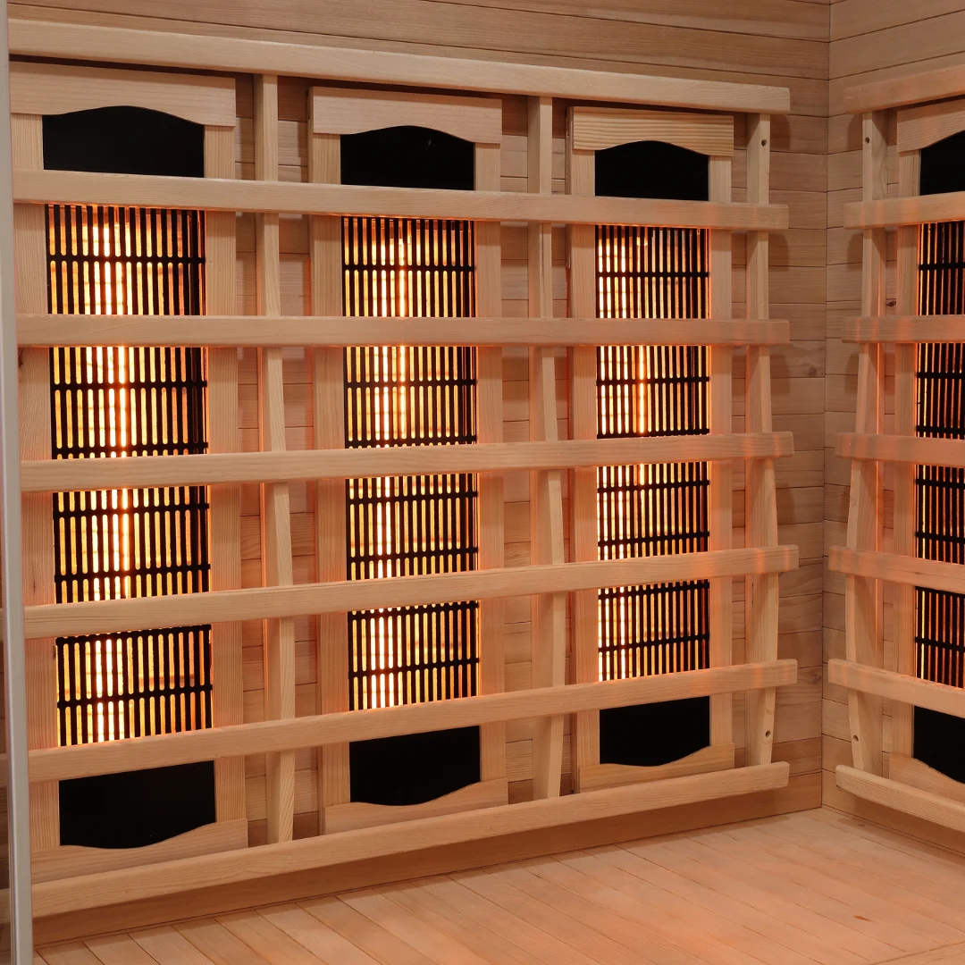 Sauna koristi kombinaciju grijača punog spektra i karbonskih grijaćih ploča, čime omogućuje ravnomjerno i dubinsko zagrijavanje tijela, uz optimalnu raspodjelu topline i visoku energetsku učinkovitost.