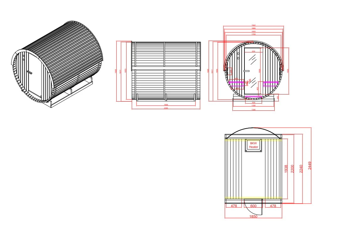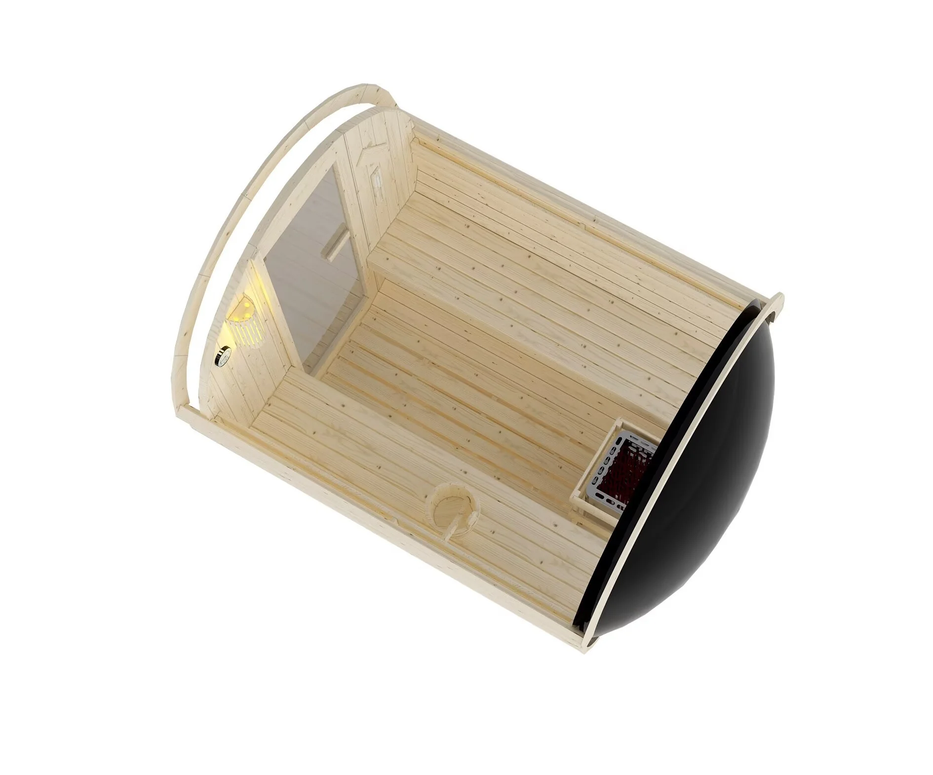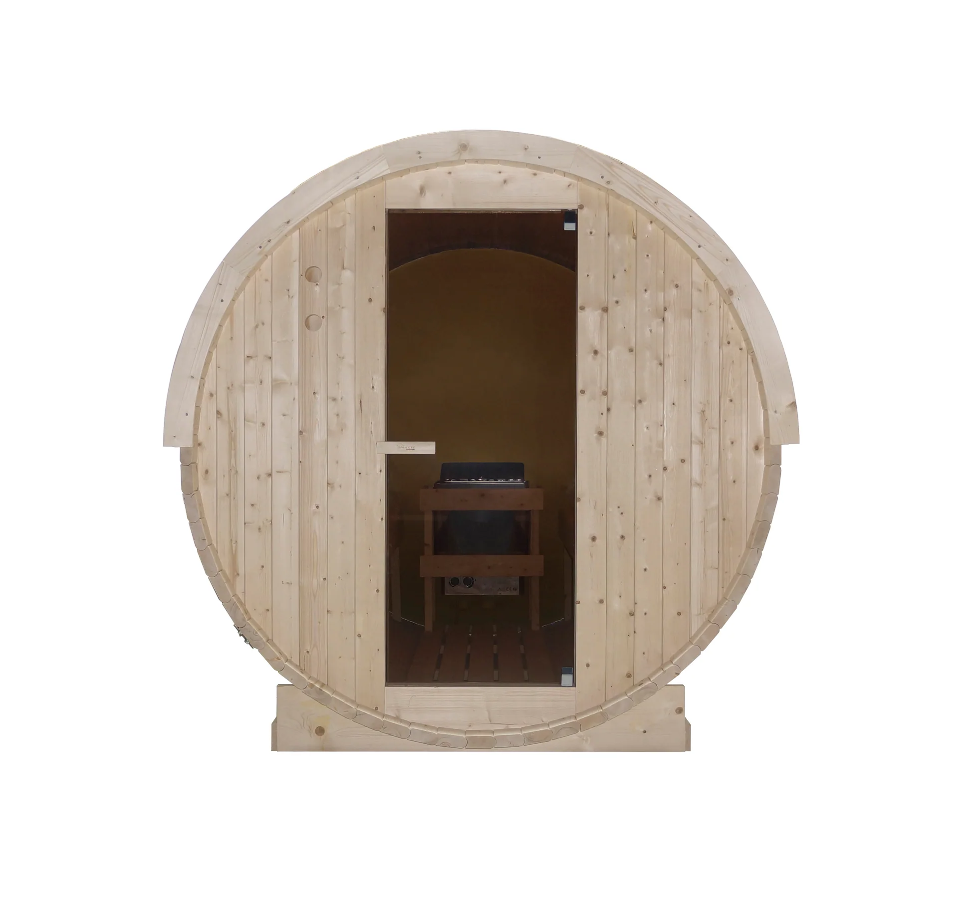 Vanjska finska sauna Nyborg L u tradicionalnom obliku bačve pruža prostrano i autentično sauniranje za do 6 osoba. Riječ je o kvalitetnom wellness rješenju koje kombinira izdržljivu drvenu konstrukciju, poboljšanu izolaciju i jednostavnu montažu, što je čini idealnim izborom za privatnu upotrebu i turističke objekte — uključujući apartmane, vile, kuće za odmor i glamping smještaje.